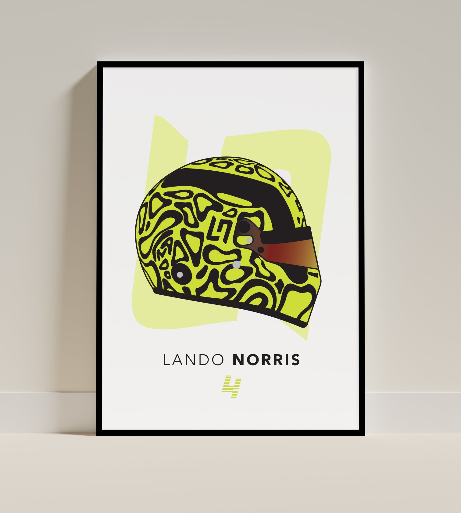 🏁 Get ready to rev up your walls with this eye-catching Lando Norris helmet print. Order now to add a piece of the track to your collection!