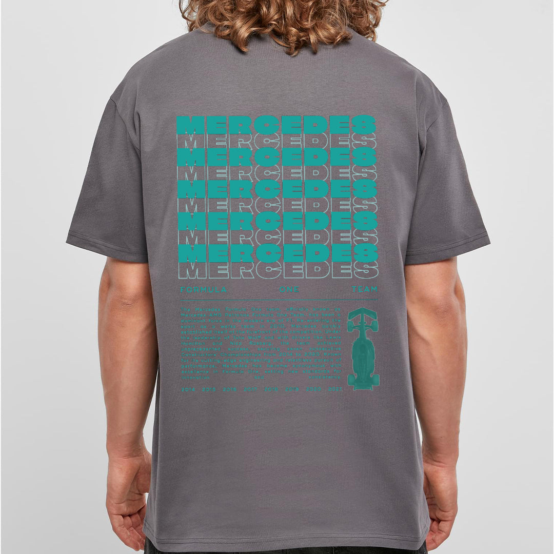 This Mercedes t-shirt is part of our very first Team Collection. Featuring our Prix Weekend logo on the front and a bold typographic Mercedes design on the back, this shirt is the perfect addition to any Formula 1 fan's wardrobe. Ideal for wearing on race weekends, it combines style and comfort for any motorsport enthusiast.